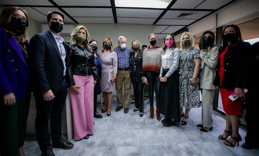 El mandatario estatal cortó el listón simbólico de inauguración de estas oficinas, ubicadas en el segundo piso de Palacio de Gobierno, en compañía de la titular de esta dependencia, María Teresa Guerra Ochoa, y como invitada especial la senadora de la República, Imelda Castro Castro, así como por las demás secretarias del gabinete y la directora del DIF, Eneyda Rocha Ruiz.