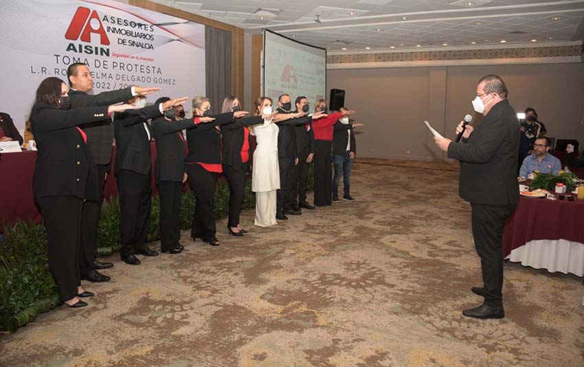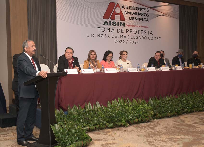 El alcalde Lic. Jesús Estrada Ferreiro, asistió como testigo de honor a la ceremonia de toma de protesta del Consejo Directivo de Asesores Inmobiliarios de Sinaloa para el periodo 2022-2024, la cual será presidida por Rosa Delma Delgado Gómez.