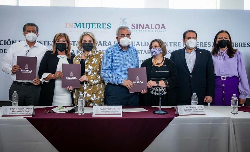 Con la presencia de la directora del Instituto Nacional de las Mujeres, Nadine Gasman Zylbermann, el gobernador Rubén Rocha Moya instaló el Sistema Estatal para la Igualdad entre Mujeres y Hombres, en cuyo marco se firmaron los Compromisos por la Igualdad y el Bienestar de las Mujeres entre el Gobierno del Estado de Sinaloa y el Inmujeres.