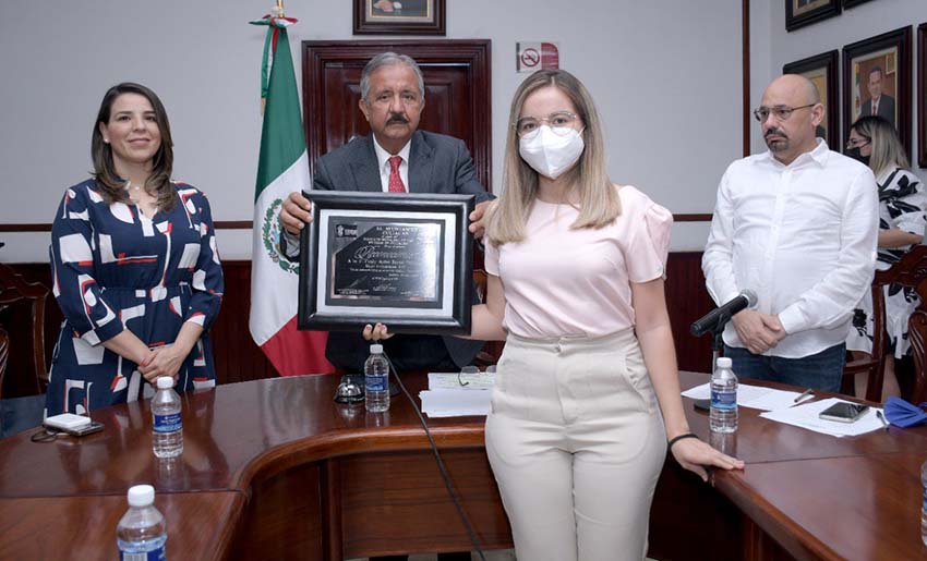 En Sesión Solemne de Cabildo, el alcalde Lic. Jesús Estrada Ferreiro hizo entrega del premio Mujer Culiacanense 2022, a Carmen Aída Guerra Miguel y Cindy Aydee Bernal Espinoza, por su destacada trayectoria en los ámbitos del periodismo y la fisioterapia deportiva, respectivamente.