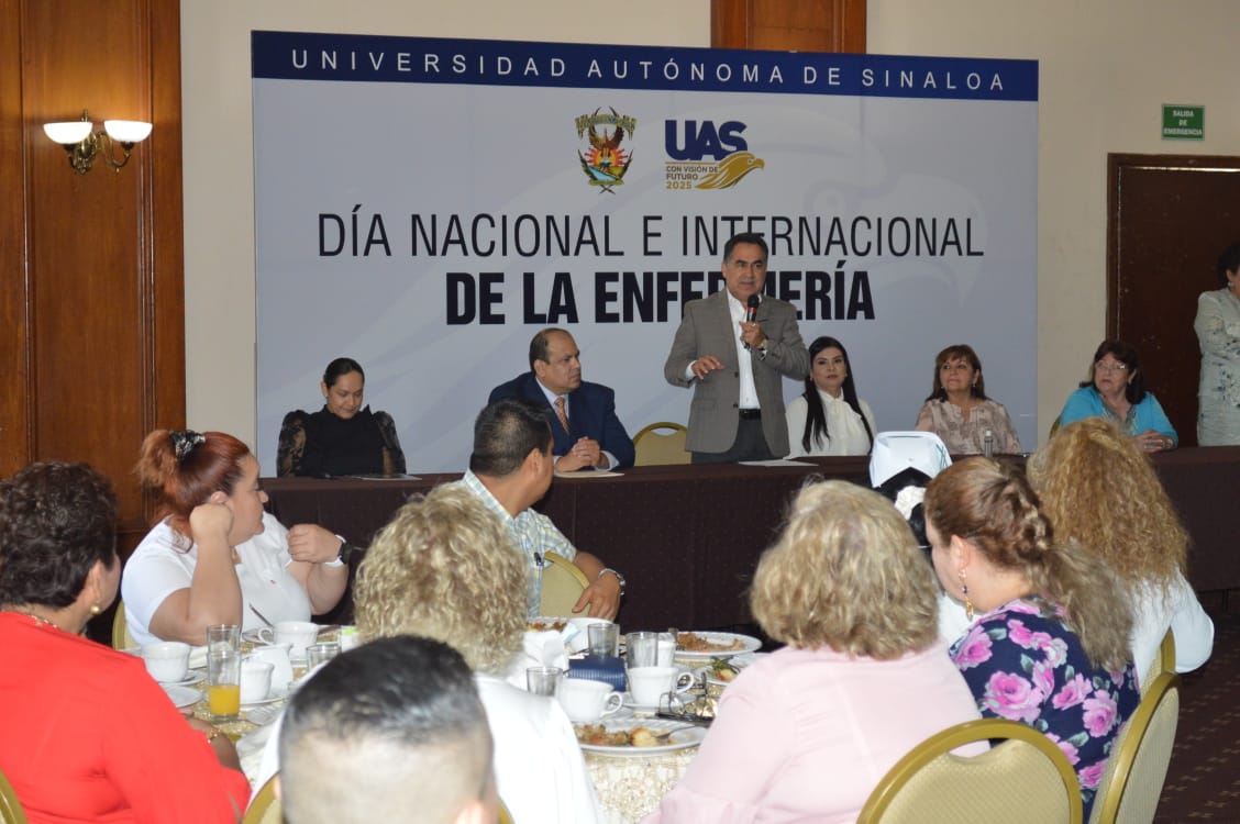 La Universidad Autónoma de Sinaloa (UAS) celebró el Día Nacional e Internacional de la Enfermería donde el Rector, doctor Jesús Madueña Molina, destacó el papel fundamental y humano de esta profesión ante personal académico de la Facultad de Enfermería Culiacán.