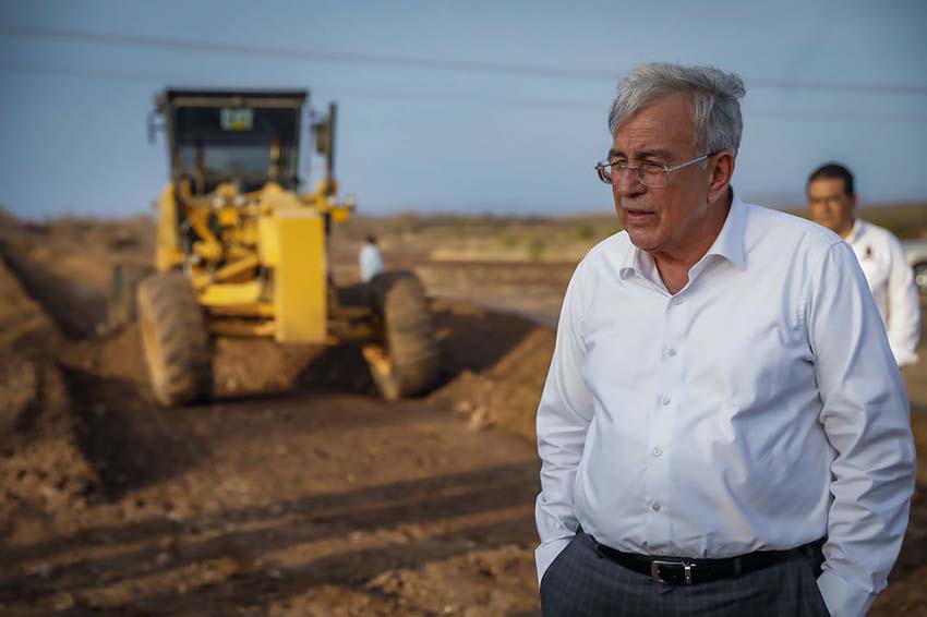 Caitime, Salvador Alvarado – El gobernador Rubén Rocha Moya supervisó los trabajos de construcción de la carretera Caitime-El Progreso, que une a los municipios de Salvador Alvarado y Mocorito, con una longitud de 10.245 kilómetros, y donde se invertirán 62 millones de pesos.