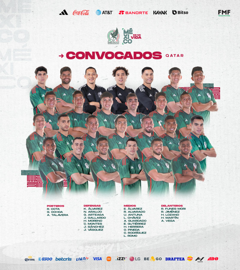 La dirección de Selecciones Varoniles da a conocer la lista de jugadores convocados por Gerardo Martino, director técnico de la Selección Nacional de México, para la Copa Mundial de la FIFA Qatar 2022.