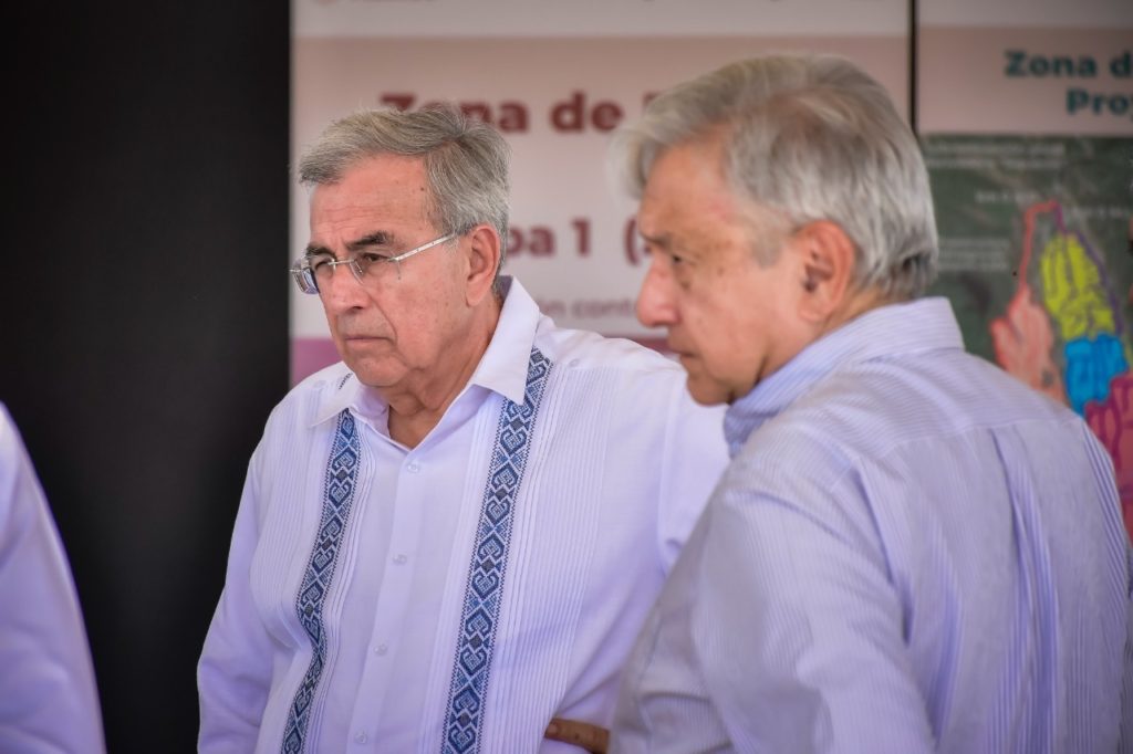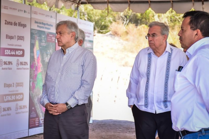 Mazatlán, Sinaloa, 18 de diciembre del 2022.- El gobernador Rubén Rocha Moya acompañó al presidente Andrés Manuel López Obrador en la gira que realizó este fin de semana por el sur de Sinaloa, en la que dentro de sus actividades estuvo la supervisión de los avances de los trabajos que se están realizando en la Presa Picachos, como son el acueducto de la presa hacia la cabecera de Concordia.