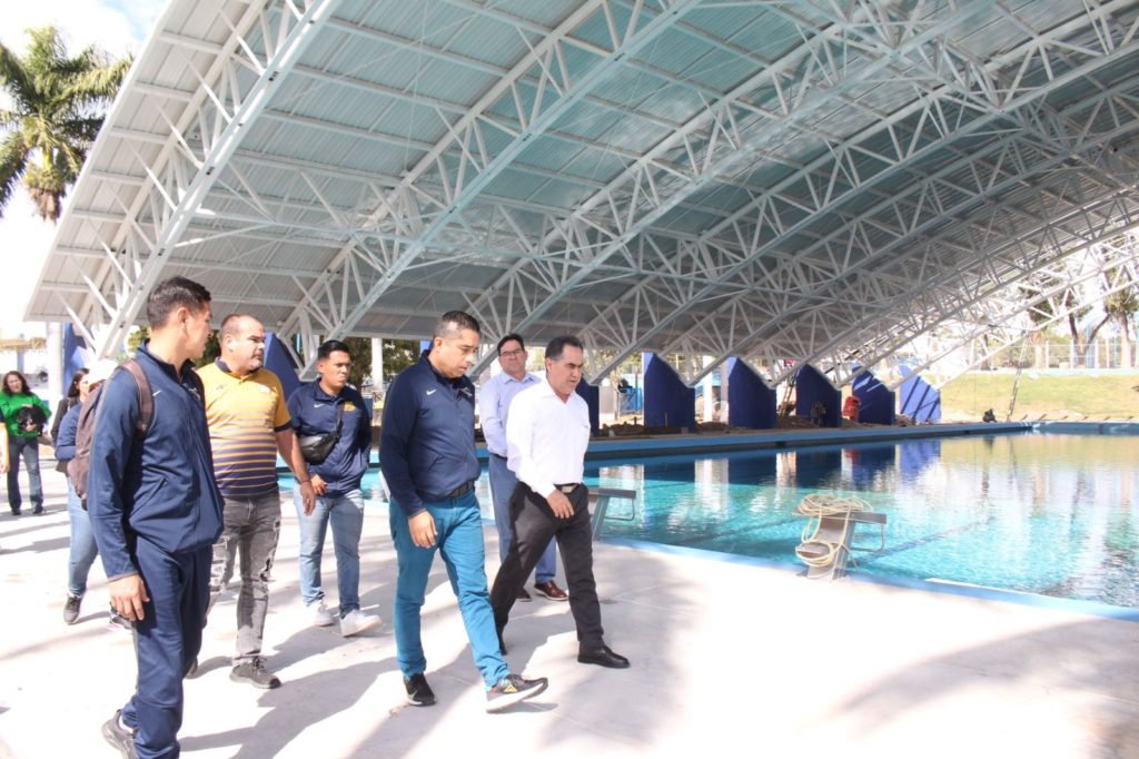 “Me dice el arquitecto Jorge Pérez Rubio (director de Construcción y Mantenimiento) que en un par de semanas estará lista ya para inaugurarse, pero también tenemos el área de Halterofilia y yo quiero pedirle al señor Gobernador que venga a inaugurar lo de la alberca porque es un recurso que él nos dio de manera extraordinaria para que tuviéramos la techumbre, pero también quiero que me inaugure el área de Halterofilia”, expresó el Rector en esta visita.