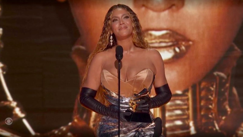 En esta velada ganó los gramófonos de Mejor Álbum de Música Dance o Electrónica, por su disco Renaissance; Mejor Canción de R&B, por el tema Cuff It; Grabación de Música Electrónica de Baile por Break My Soul y Mejor Interpretación de R&B tradicional por Plastic Off the Sofa. En cuanto a nominaciones en su trayectoria, está empatada con su esposo Jay-Z, con 88. (Excélsior).