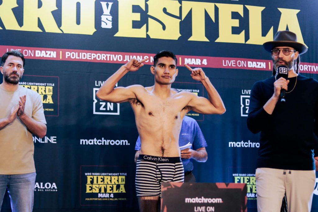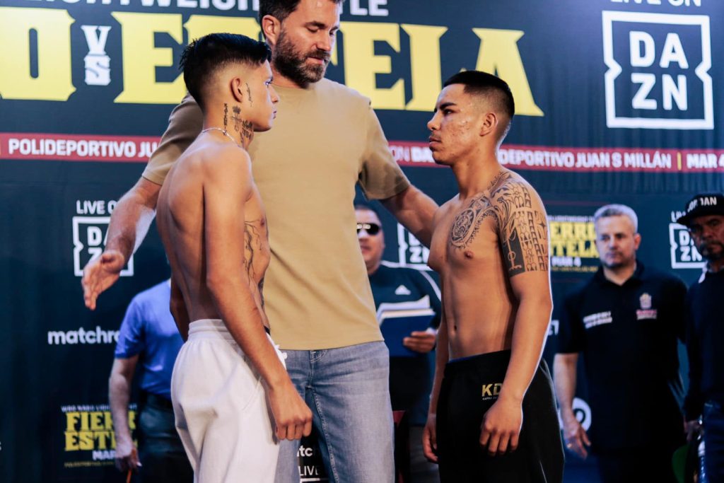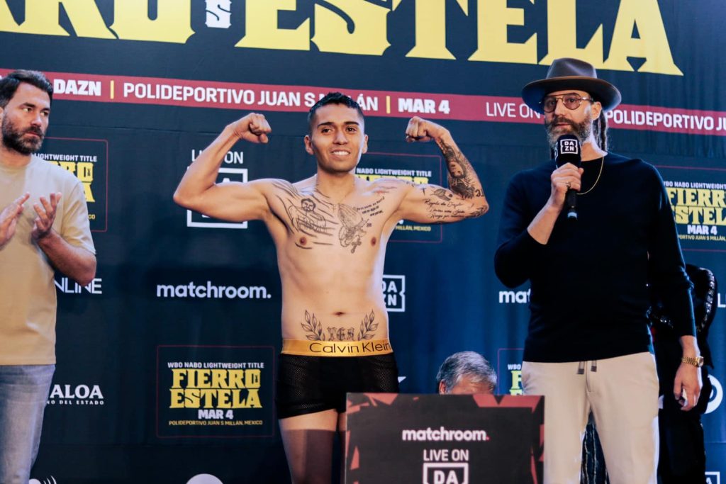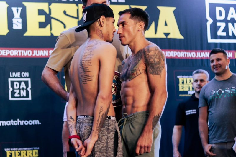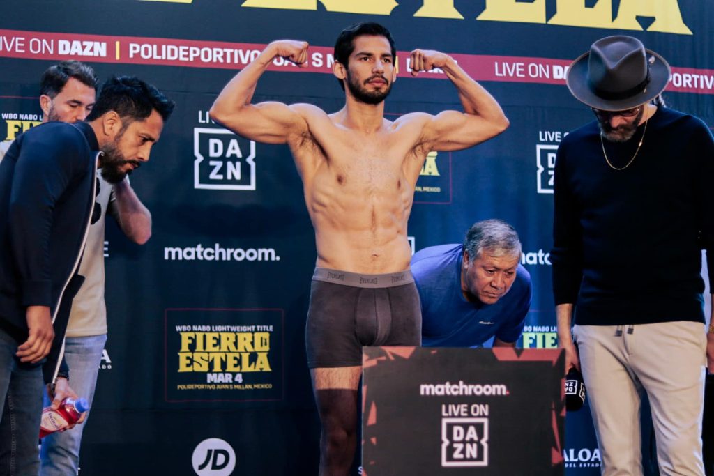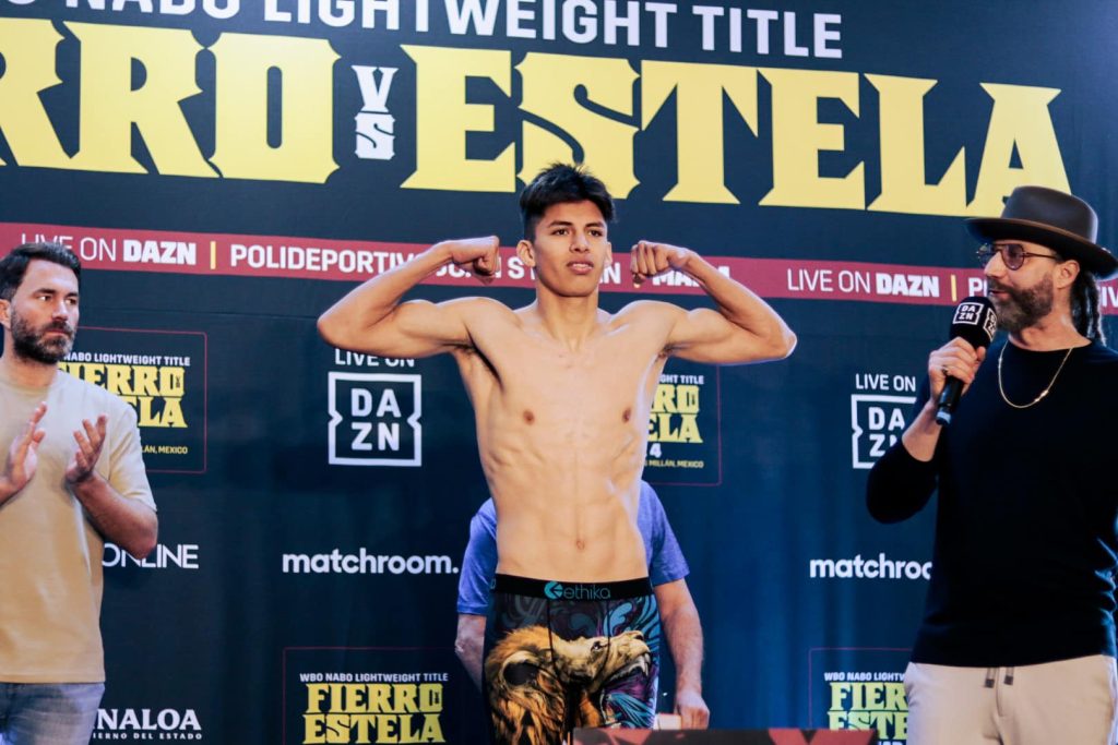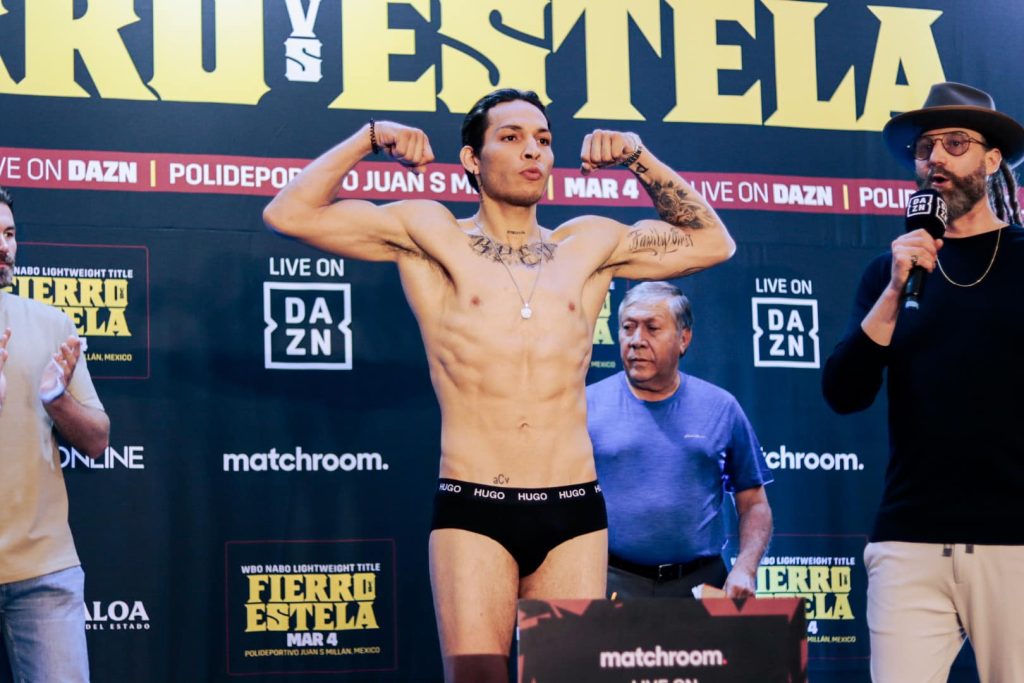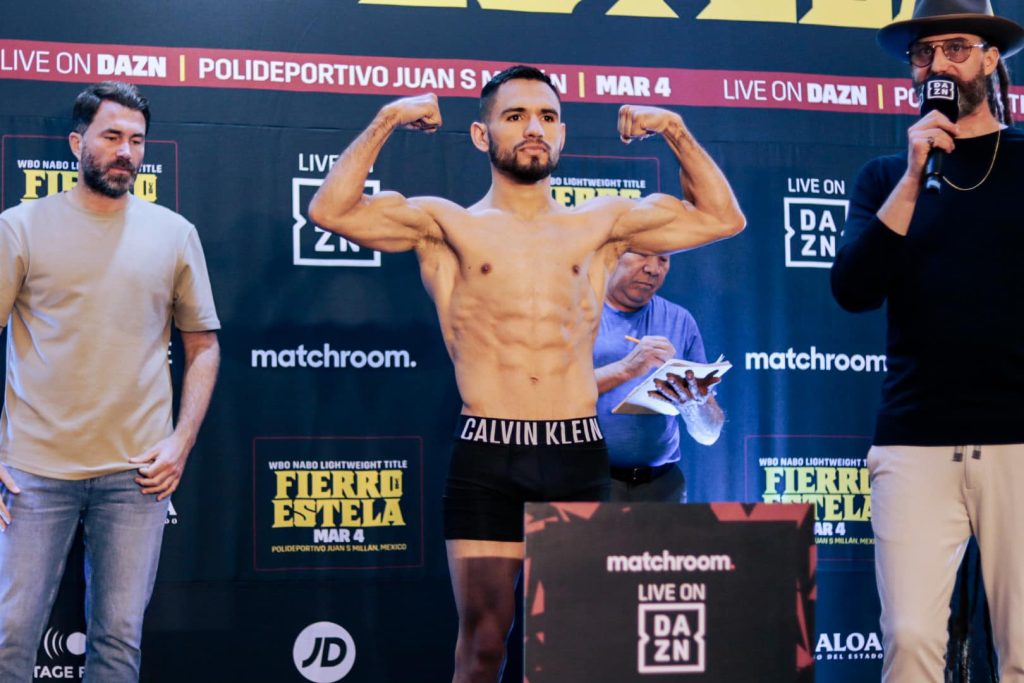 En la ceremonia de peso oficial de este viernes, campeón y retador marcaron pesos por debajo del tope de la división, 135 libras, con Fierro registrando 134.4 libras, y Estela 134.2´.