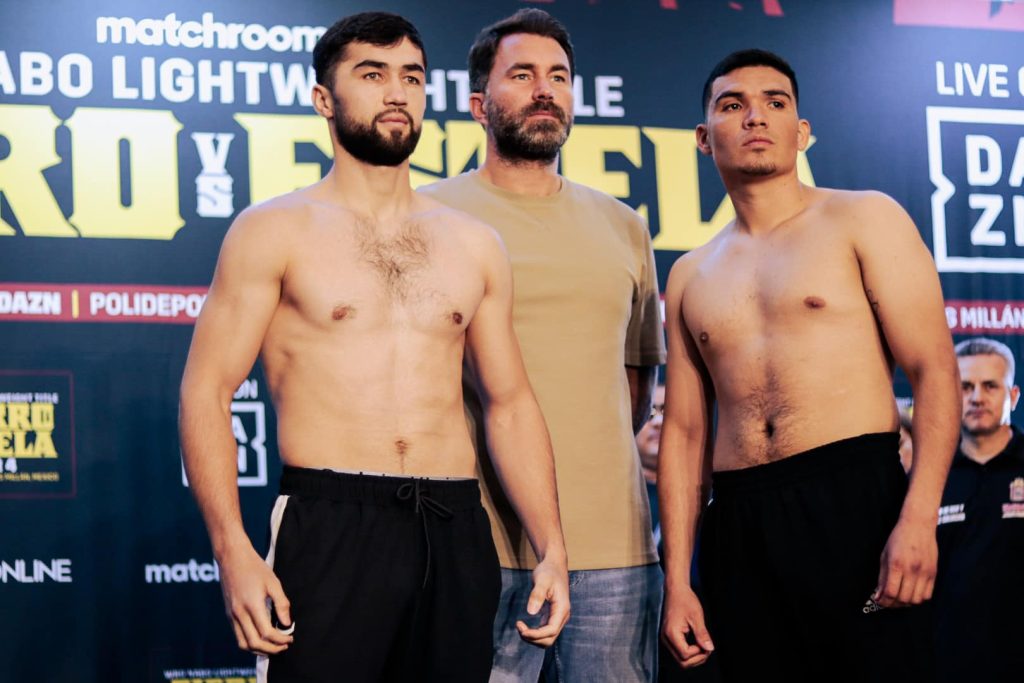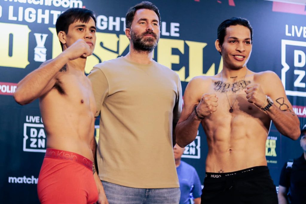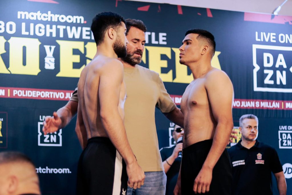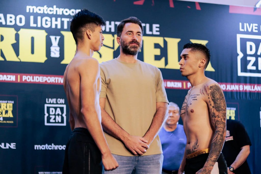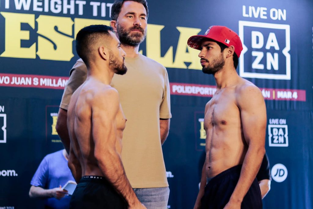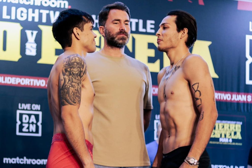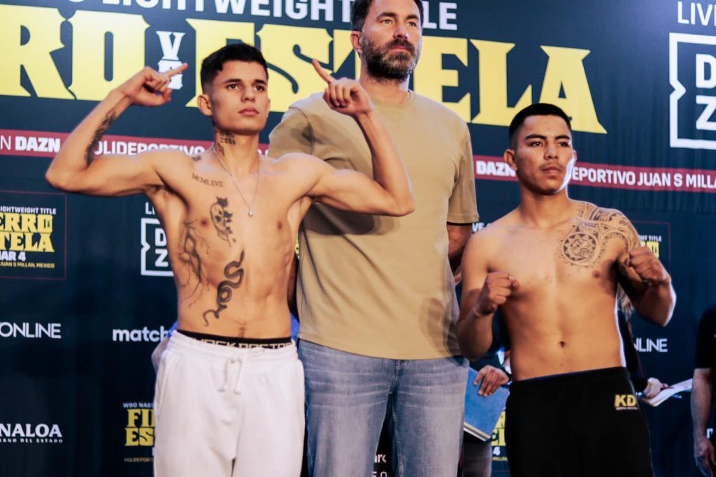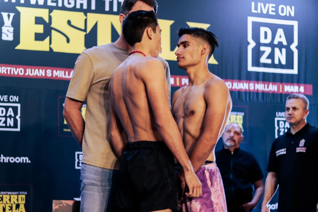 En la ceremonia de peso oficial de este viernes, campeón y retador marcaron pesos por debajo del tope de la división, 135 libras, con Fierro registrando 134.4 libras, y Estela 134.2´.