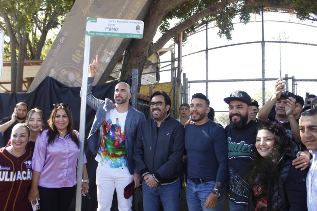 Por su parte, Gámez Mendívil le entregó el reconocimiento y una casaca al ilustre culichi, se llevó a cabo el corte de listón, que dio por inaugurada la obra, posteriormente la respectiva develación de la placa y la nomenclatura de la vialidad: Sector Recursos Hidráulicos, Óliver Pérez, Fraccionamiento Portales del Country.