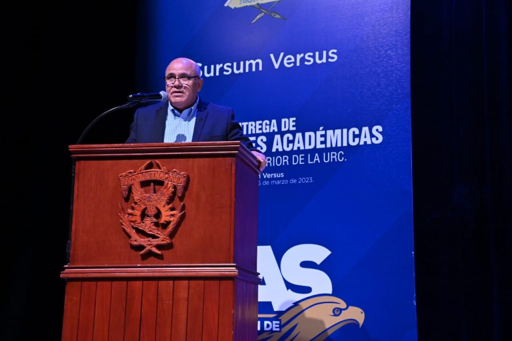El Secretario General, doctor Gerardo Alapizco Castro, en representación del Rector, doctor Jesús Madueña Molina, hizo extensiva la felicitación a los docentes beneficiados con la entrega de bases, a quienes dijo, no solo se reconoce su vocación y sus derechos, sino también su amor a los colores rosalinos.