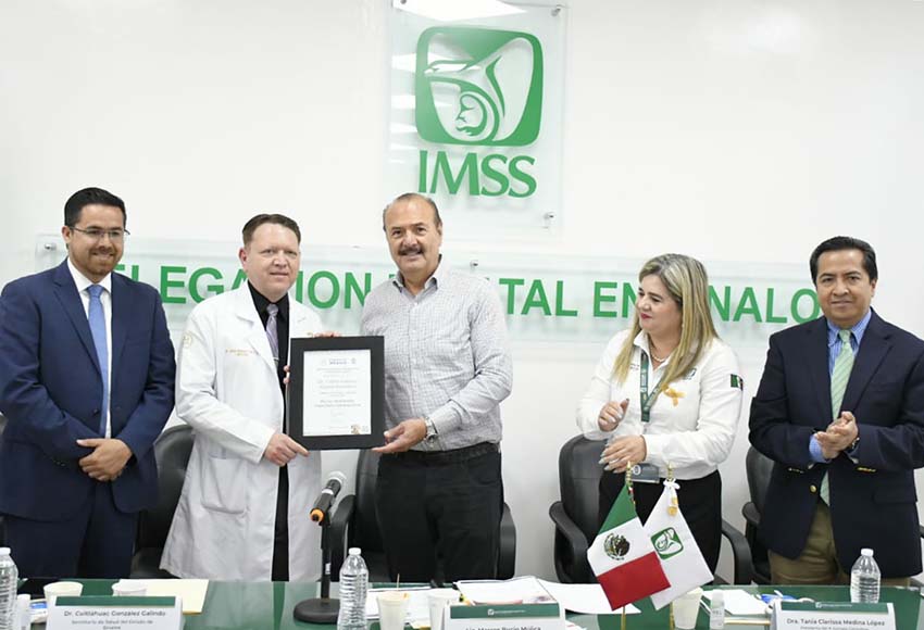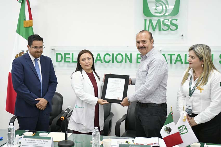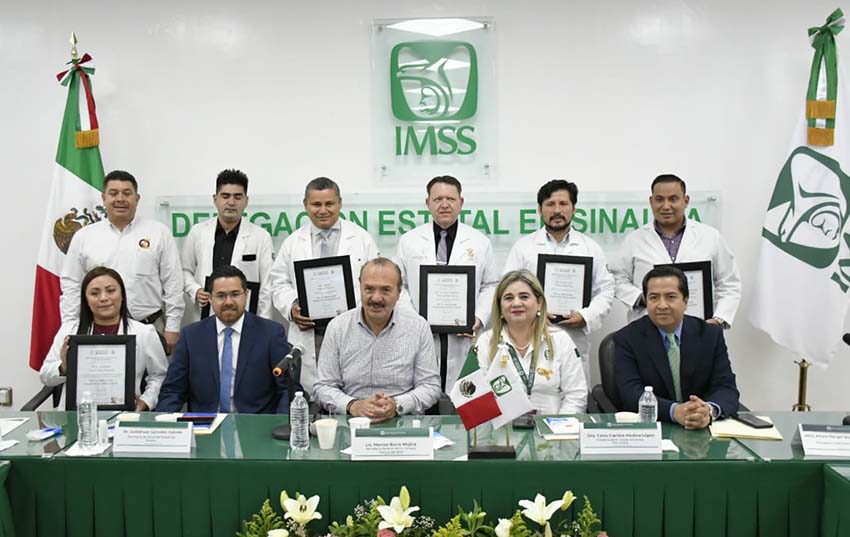 Finalmente, hizo entrega de cinco reconocimientos a personal del OOAD del IMSS en Sinaloa, por su trayectoria institucional y alta vocación de servicio.