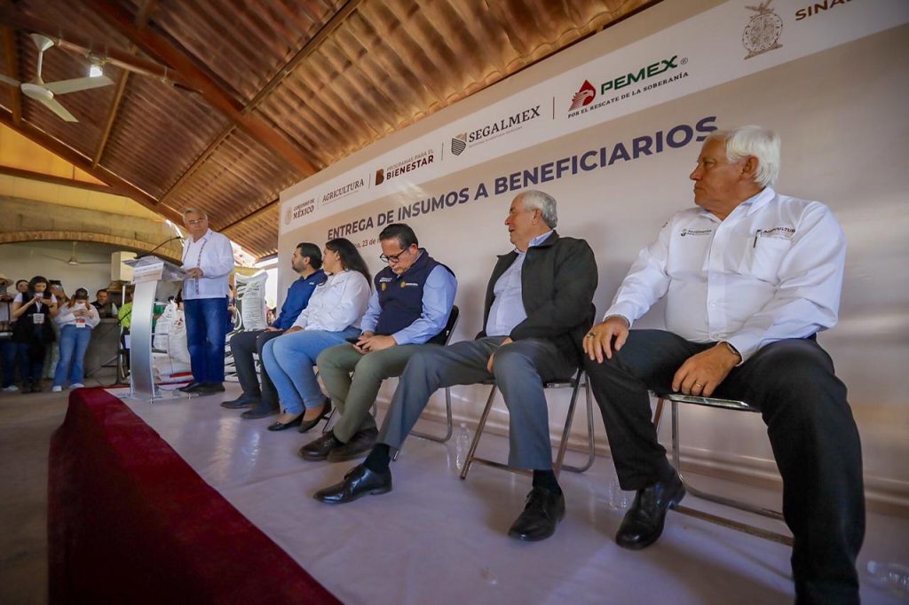 Con la destacada presencia de Victor Manuel Villalobos Arámbula, Secretario de Agricultura y Desarrollo Rural, entre otras autoridades del sector agrícola, el mandatario estatal detalló que se entregarán mas de 40 mil paquetes a los productores ya empadronados, quienes recibirán 300 kilogramos por hectárea e implica la atención a 230 mil hectáreas en esta primer etapa.