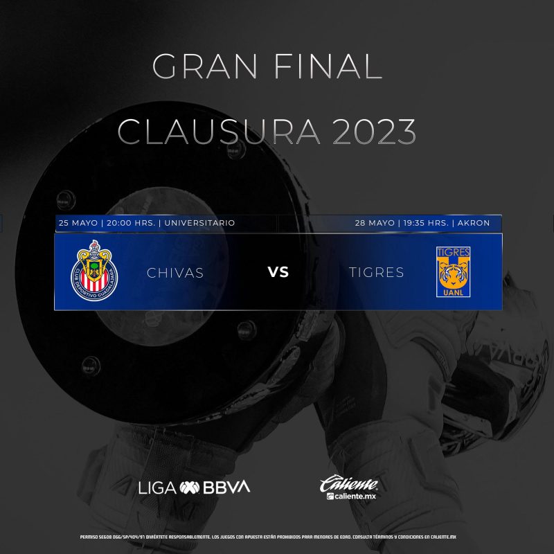 CIUDAD DE MÉXICO, a miércoles 24 de mayo de 2023.- La LIGA BBVA MX informa las fechas y horarios de los encuentros de la Gran Final entre los clubes Chivas del Guadalajara y Tigres UANL, serie la cual definirá al campeón del Torneo Clausura 2023.