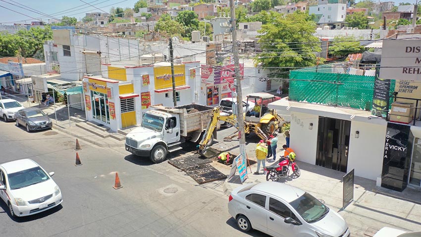 Otra de las cuadrillas, se desplegó sobre la avenida Ignacio Aldama, frente al Hospital General, zona en la que se trabajó con maquinaria conformada por una retroexcavadora, misma que liberó al afluente pluvial de esta área.