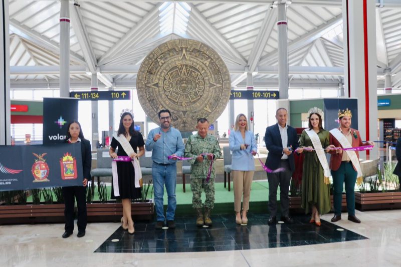 CIUDAD DE MÉXICO, a julio de 2023.- La ruta aérea Culiacán-AIFA (Aeropuerto Internacional Felipe Ángeles), de la aerolínea Volaris, fue inaugurada por la Secretaria de Turismo de Sinaloa, Estrella Palacios Domínguez; el Secretario de Economía del Estado, Javier Gaxiola; el presidente municipal, Juan de Dios Gámez Mendívil, y el administrador del Aeropuerto Internacional de Culiacán, Víctor Vladimir Ramírez Del Ángel.