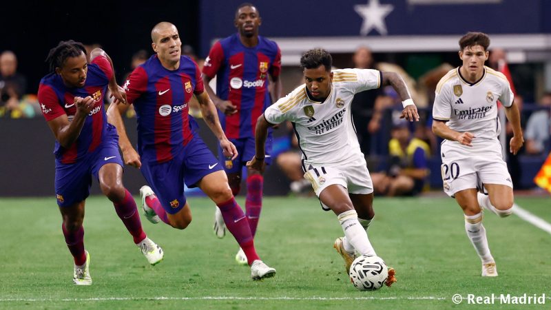 DALLAS, TEXAS, a sábado 29 de junio de 2023.- El Real Madrid cayó derrotado en el Clásico de Dallas, pero mereció mucho más en el tercer partido de esta pretemporada. Nuestro equipo tuvo las ocasiones más claras del encuentro y estrelló cuatro disparos en el larguero, uno de ellos en un lanzamiento de penalti de Vini Jr., y otro en el poste.