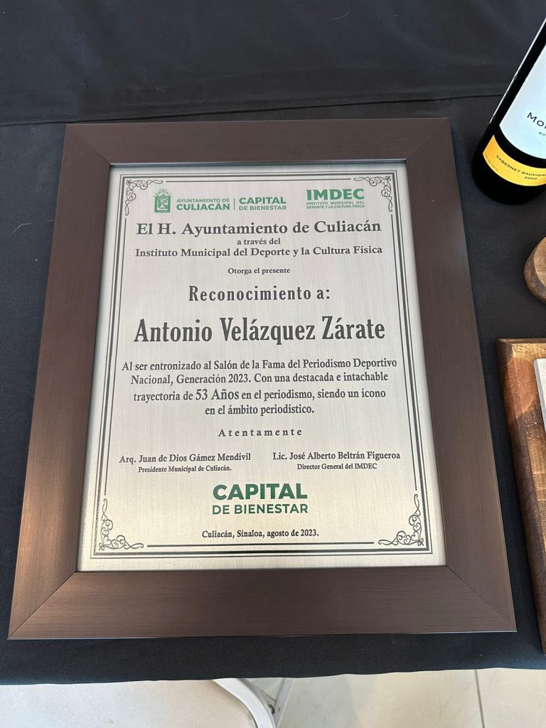 «El día de hoy reconocemos a ‘Toño’ Velázquez, porque 53 años de trayectoria, se construyen con esfuerzo y disciplina, con pasión, pero sobre todo con valentía. Muchas felicidades por ser un orgullo y un ejemplo para la sociedad culiacanense», agregó Peñuelas.