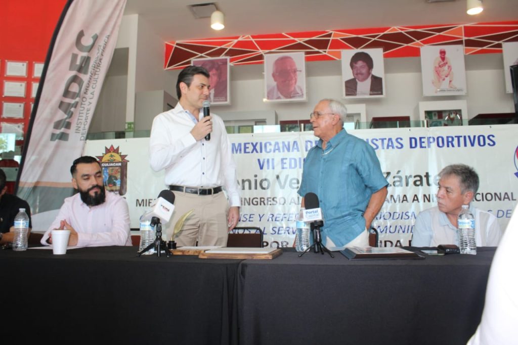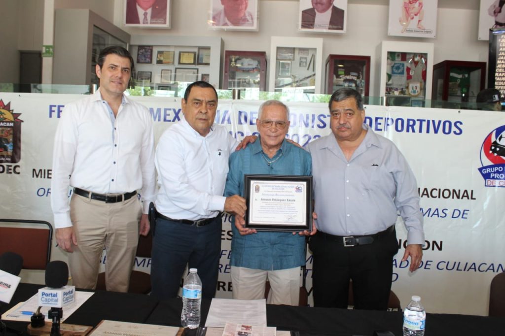 El secretario del Ayuntamiento de Culiacán, José Ernesto Peñuelas, en representación del alcalde, Juan de Dios Gámez Mendívil y el director general del IMDEC, José Alberto Beltrán Figueroa, encabezaron el acto, donde la familia del futbol reconoció la trayectoria de «Toño» Velázquez, por este logro a nivel nacional, el cual pone en alto el nombre de Culiacán y el Estado.