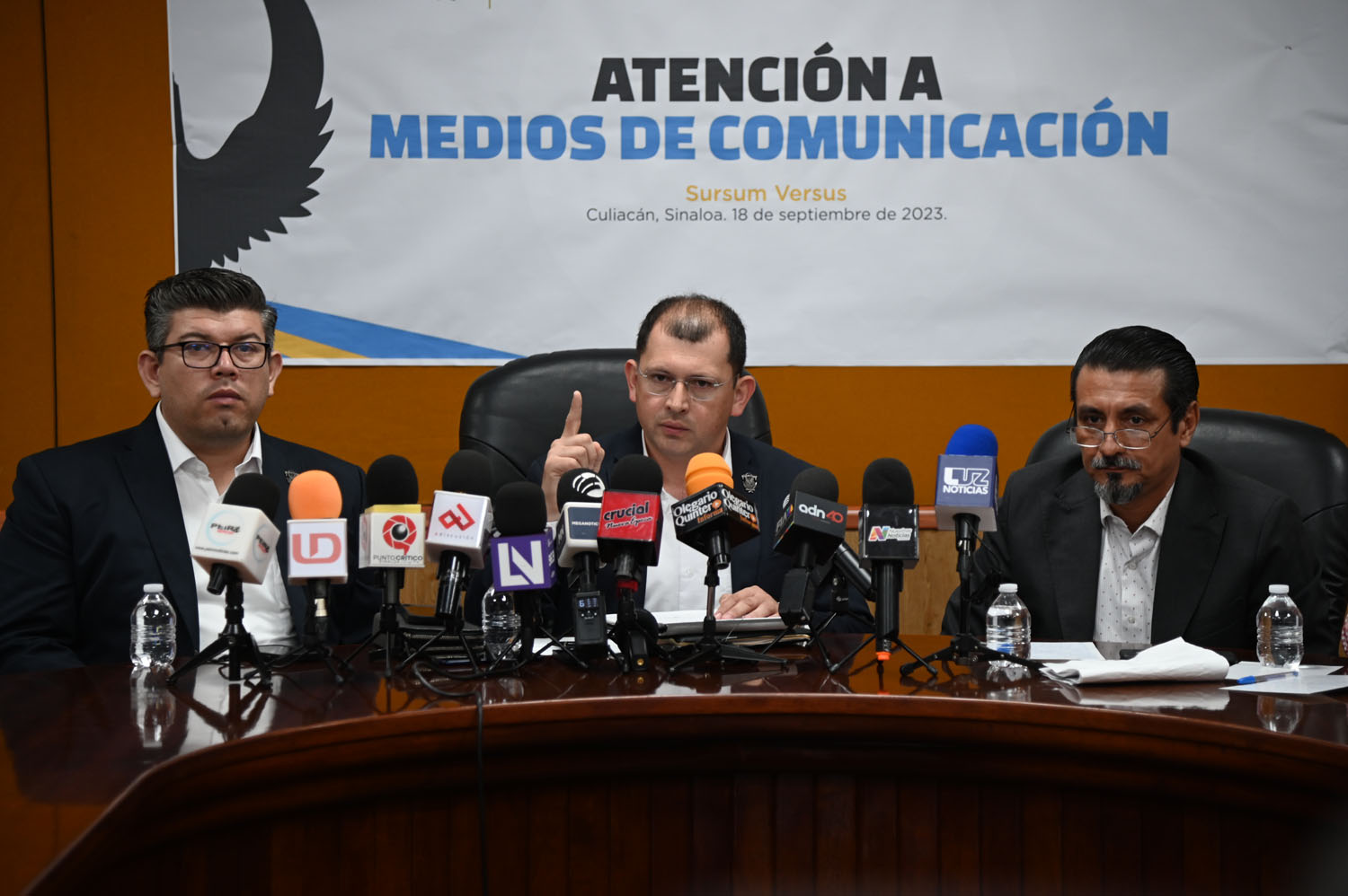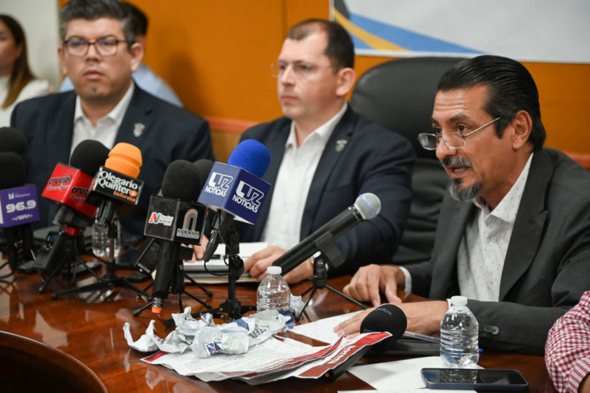 En conferencia de prensa encabezada por el Secretario General, doctor Robespierre Lizárraga Otero, el Director de Asuntos Jurídicos, licenciado Yamir de Jesús Valdez Álvarez y el dirigente del SUNTUAS Académicos, maestro José Carlos Aceves Tamayo, el Vicerrector dio a conocer que en ese momento les hicieron llegan volantes y algunas mantas que fueron recogidas de botes de basura de las unidades académicas de las cuatro unidades regionales.