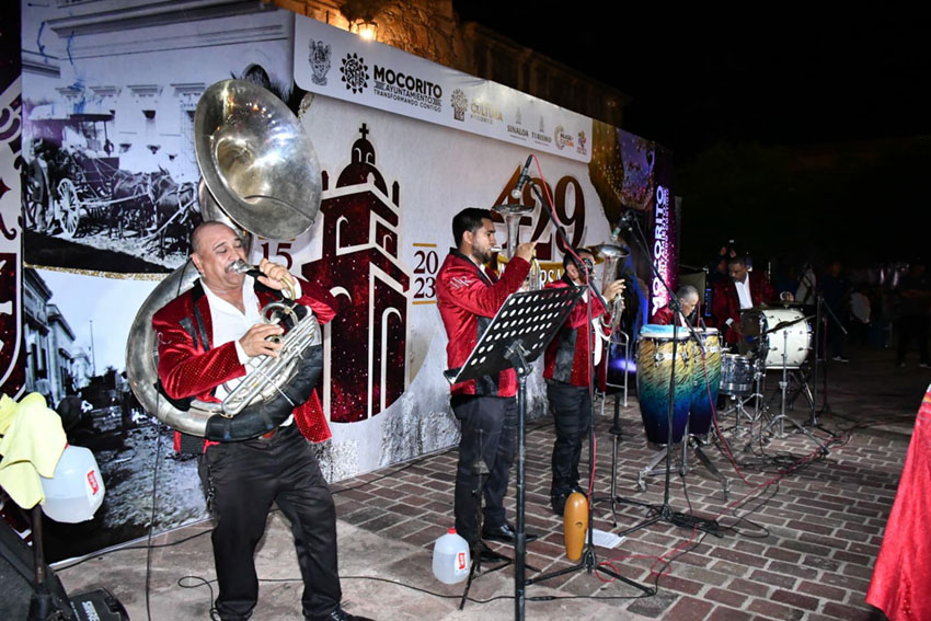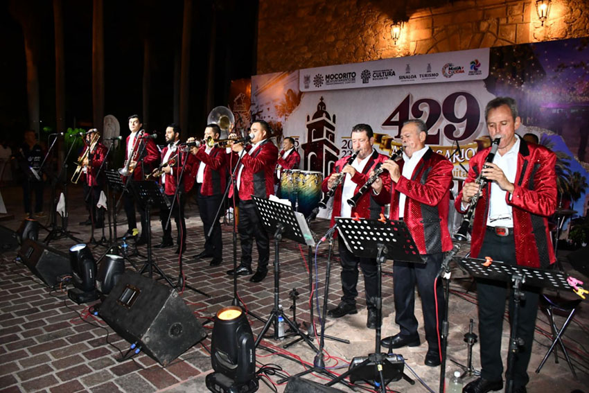 En su mensaje de bienvenida, Elizalde Ruelas externó que “Mocorito hoy está de fiesta, estamos celebrando 429 años de historia y creo que una excelente manera de hacerlo, es reconociendo precisamente a la Banda Hermanos Rubio que ya son orgullo mocoritense y seguirán siendo por muchos años más, excelentes embajadores de nuestra tierra”.