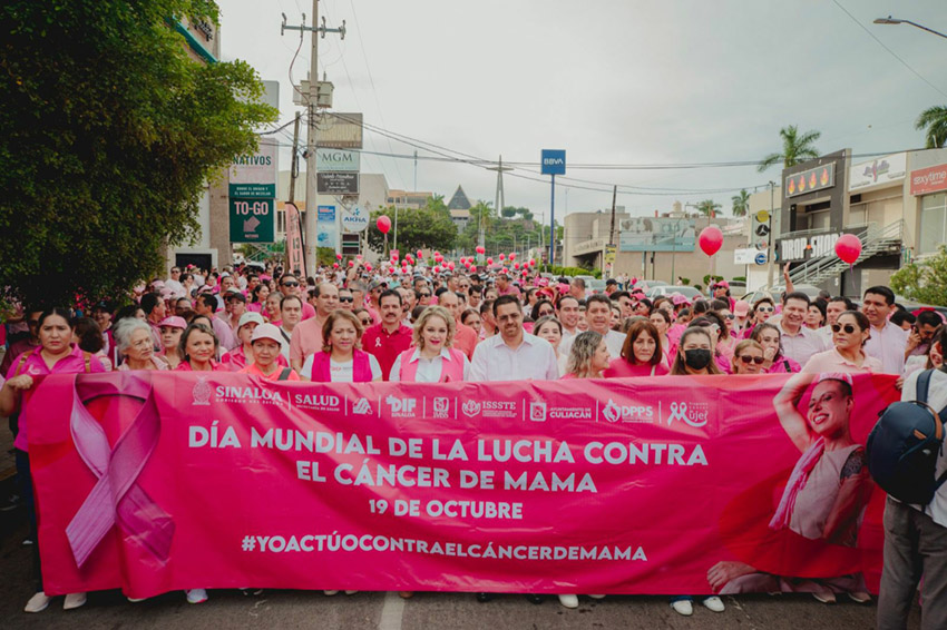 En el marco del Día Internacional de la Lucha contra el Cáncer de Mama, la presidenta del sistema DIF Sinaloa, doctora Eneyda Rocha Ruiz, encabezó la marcha para promover la prevención, detección temprana y tratamiento oportuno a las mujeres con cáncer de mama para salvar sus vidas.