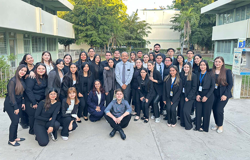 El docente explicó que para esta dinámica los estudiantes de 5 años de la Licenciatura en Negocios forman equipos de al menos 7 integrantes para simular una negociación, donde un equipo tiene que ser México y el otro una empresa extranjera, para negociar la importación de un producto que se va a exportar desde México.